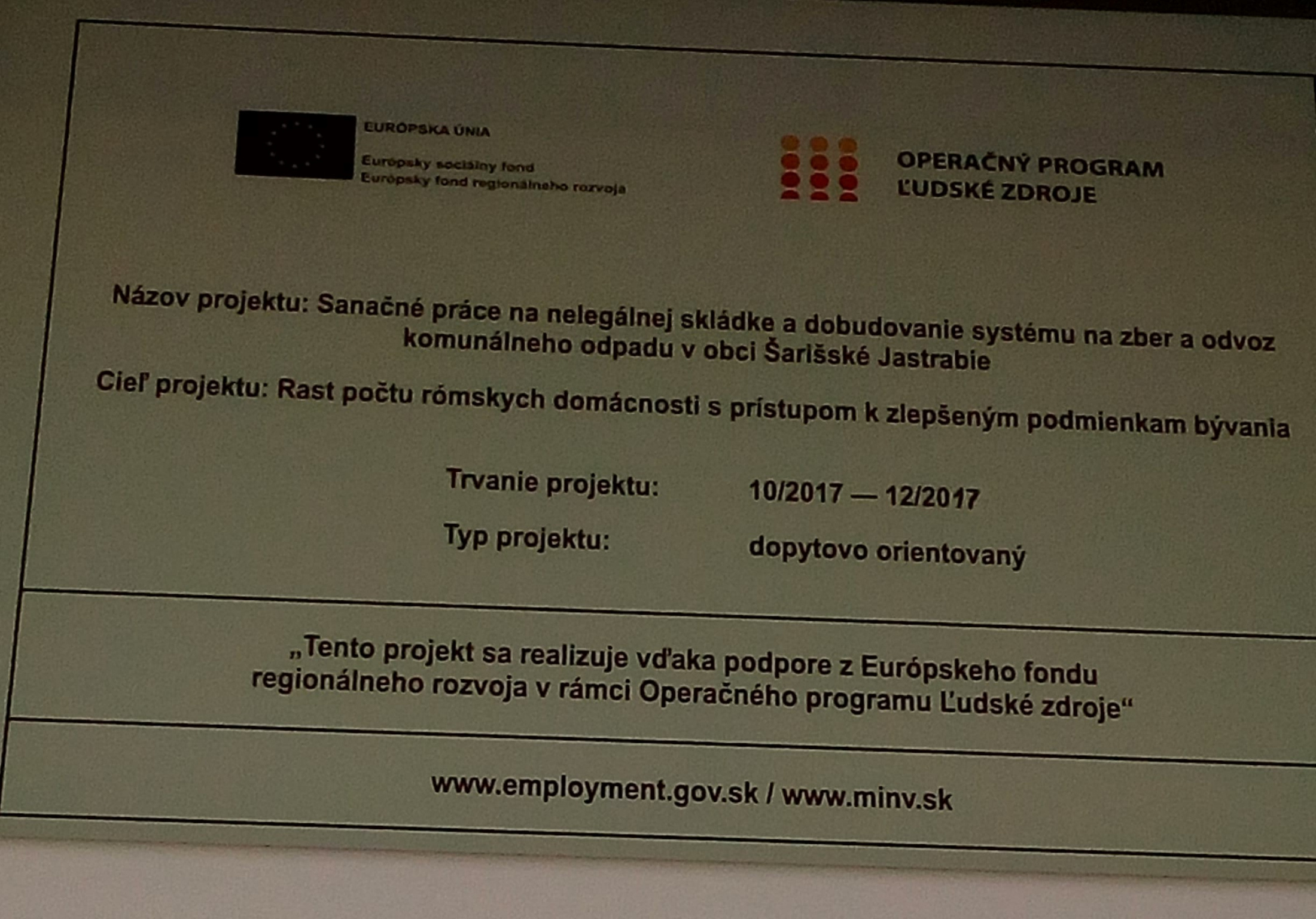 Sanačné práce na nelegálnej skládke a dobudovanie systému na zber a odvoz komunálneho odpadu v obci Šarišské Jastrabie